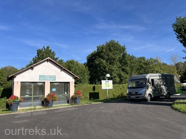 This is a Camping-Car Park site, we don’t have a reservation, which means that we can stay another night as long as there are pitches available that are not booked. The booking or reservation system at Camping-Car Park does not suit our mode of travel, because you have to purchase a membership pass for 12 months at a cost of €29 (Sept 2025 price). The membership pack allows you to reserve a pitch within a certain time window and cancel without cost as long as you cancel more than 24 hours before your planned arrival. That is definitely not our way of travelling, it’s too prescriptive, we just don’t know what we will find along our journey or whether we will want to stay more than a night. The site here at Auzon has very few motorhomes on it, so staying is not a problem. We would urge the Camping-Car Park network to review their booking and reservation system to make it more flexible and more appropriate for casual travellers, they could consider setting aside a number of pitches for ‘drop-in’ stays even in busy periods.