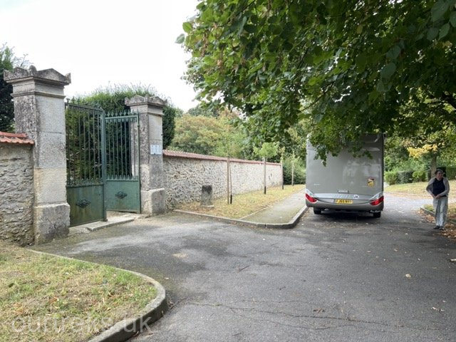 In the night I dream of the cemetery. Not as strange as it sounds. During our escape from Portugal in March 2020 at the start of Covid lockdown (and a drive north of 1700 km to Calais), there was no water available for the whole of that journey. All taps were locked off except… cemeteries. In those strange days cemeteries were our lifeline (parking place and water). Looking on Google maps, we find a couple nearby. We drive to the first at Villiers Adam. Access up a very narrow incline at least 1:4, not suitable for Hymer. I go for a foray climbing the short, cobbled incline and find the cemetery gate. A bit run down but clearly tended because I see watering cans. I search for the tap, in the very far corner I find a large lead tank filled with run-off water, quite clear but unfiltered and with floating bits… but where from? I decide not.
