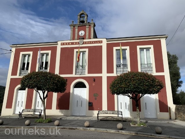 Alan notes that the two taps (one for drinking water and one for cleaning the toilet cassette) are very close to each other, perhaps no more than two inches apart… not a good design. However, we have the lovely park, all services (a grey water drain at the bottom of the hill) and electricity and the parking is free. Later, between the heavy rain showers, we walk about 300m into Ourol village which is small and past its heyday but with many lovely old houses (built perhaps in the 1920s) which now are empty.