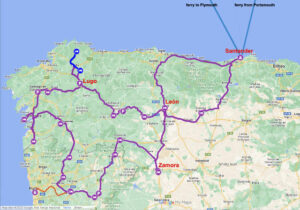 In the morning it is raining heavily, our French neighbours leave (possibly disgusted at the noise made by the locals) and we make plans. We decide on an early lunch and then to head north towards the coast. As we are sitting at the table, six large and expensive white Range Rovers arrive bearing the Xunta de Galicia logo. Seven very important-looking men get out and congregate under the eaves of the closed and locked visitors centre. They talk and they look at the broken pavement and walk importantly around the building. About 10 minutes later an even more important man arrives in his black Mercedes (so much for the financial prudence of the Council) and saunters over to the group, they separate into a circle around him and are deferential in their demeanour… he must hold the budget or be the funder!