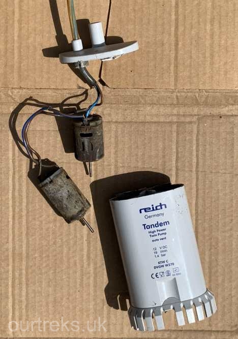 We replaced the pump by another Reich pump because the first had given good service, although I did consider changing from a submersible pump to a Shurflo diaphragm pump. One of the reasons to stay with the Reich submersible pump was that we had a long trip to Spain and Portugal booked and I would have had to make the changes to the water system before we went. With all that in mind we ordered a new Reich pump from Caratech at Lincoln, it arrived quickly and was fitted very easily. The flow and pressure were much better than the original Reich water pump so we were very happy.