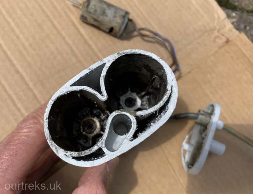 As this pump is likely to go back to the maker I don’t want to cut it open to find out what has gone wrong. However, I can report that some of the water that came out of it was dirty, so I suspect that water has gone into the pump and caused corrosion.