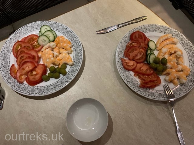 The café, Aqua Barroso is open and family groups are sat outside at tables under the trees and some inside also at the bar. They are drinking wine and eating food. I see Emma (from the Netherlands) who is in the camper next to us which has broken down (gear box problem) and is here until she can get a recovery vehicle here up in the mountains, to take her to a repairs garage who can assess what is needed and repair it. She thinks she may be here some time. Young Humberto, who runs the campsite for his father has been very helpful as have other campers with a car to take her for shopping. At the café it seems that it is Humberto (senior’s) birthday and all the family are here for a celebration. We are going to take photos and leave but Emma asks if we will stay and eat with her if Young Humberto is agreeable. She asks and negotiates a three-course meal for the three of us. She has a carafe of deep red Portuguese wine which we share and we get another later.